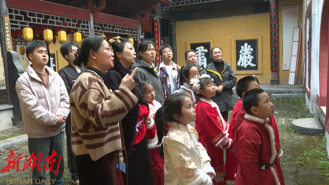 在志愿者带领下,小朋友们走进“曾八支祠”参观,古朴的建筑、精美的雕刻和传统的布局,吸引着他们的目光,仿佛穿越了时空,置身于历史长河中与前辈对话。