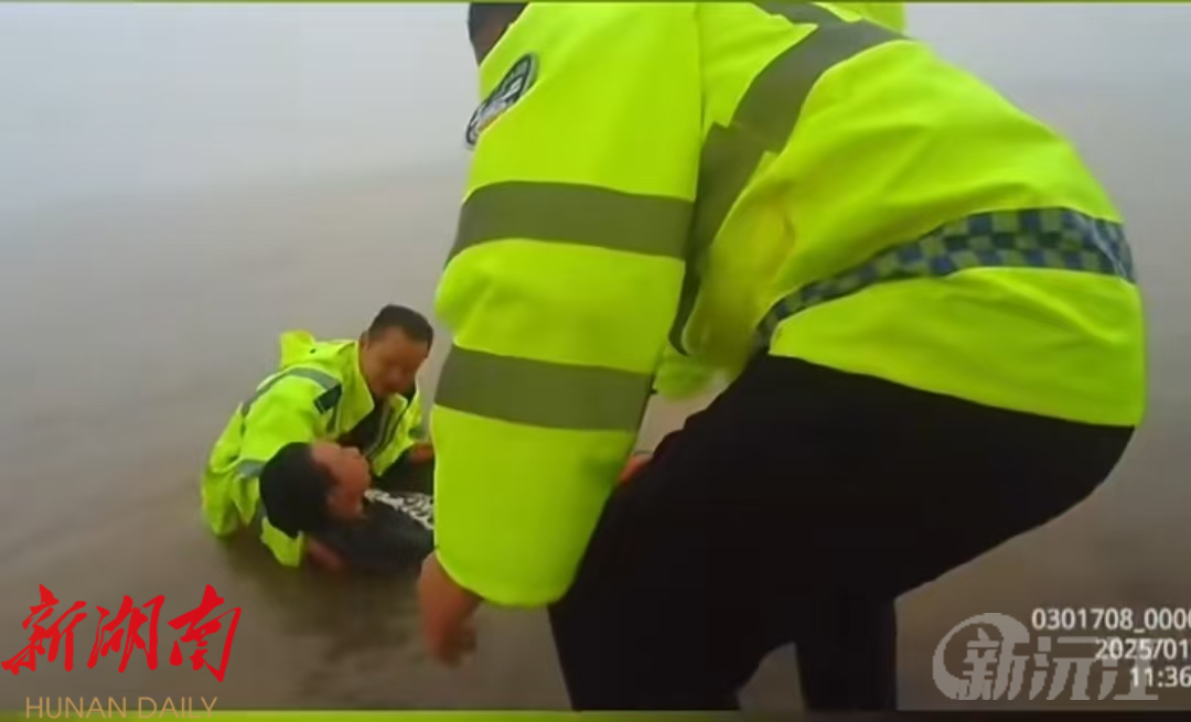 当天上午11时20分许,沅江市公安局交警大队秩序中队民警曹胜清、辅警匡帅宇巡逻保畅至白沙大桥路段时发现有群众聚集,二人上前查看,得知有一名男子不幸从桥面落水,情况十分危急。匡帅宇迅速将警车调头,开至湖边,曹胜清则开始呼叫增援。