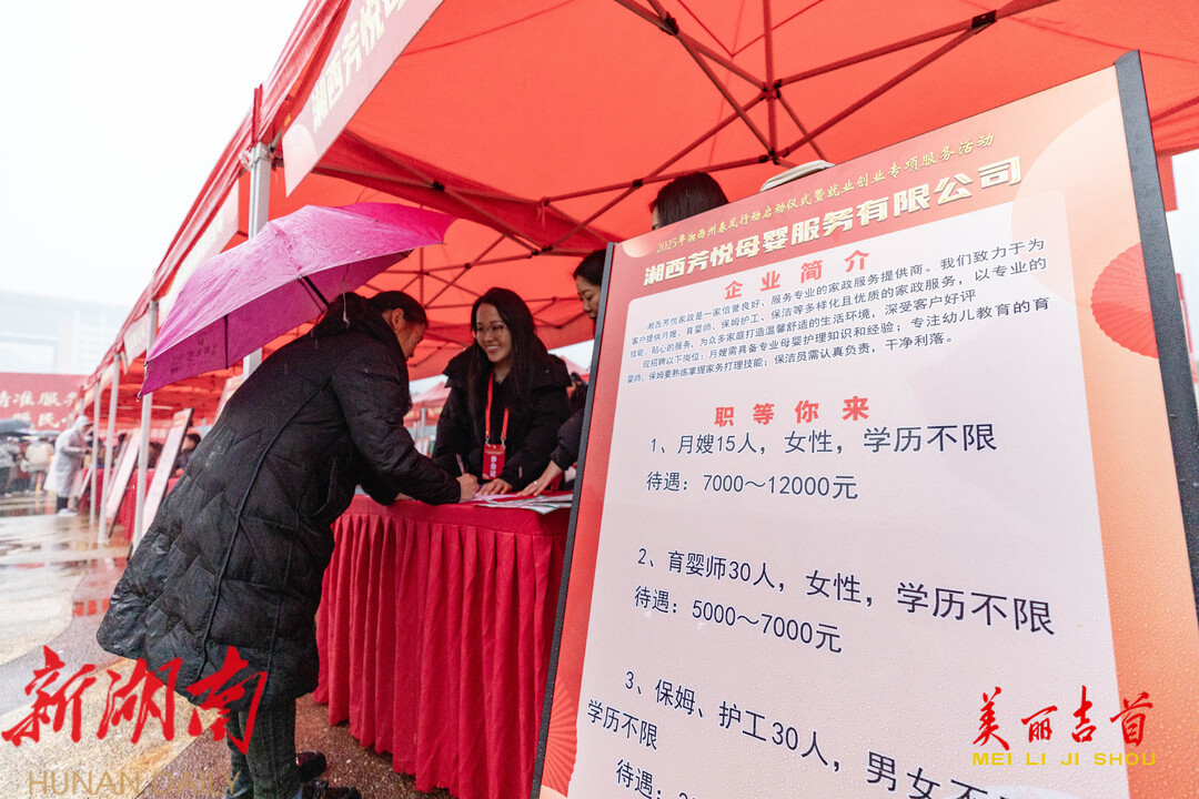 1月24日,2025年湘西州“春风行动”启动仪式暨就业创业专项服务活动在吉首市人民广场举行。本次活动吸引省内外199家企业参加招聘,提供各类就业岗位39080个(其中可招用残疾人岗位986个),围绕就近就地就业、外出务工就业和创业带动就业开展系列送岗援助活动,帮助求职者寻找合适的工作岗位,缓解企业招工难问题。