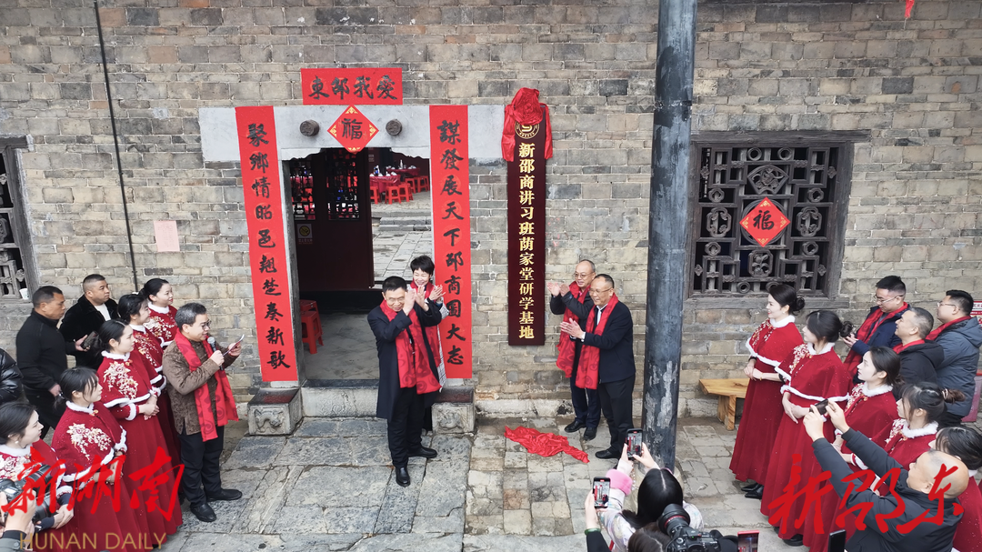 活动中,傅丽华、罗健康以及邵商代表共同为新邵商讲习班荫家堂研学基地揭牌。