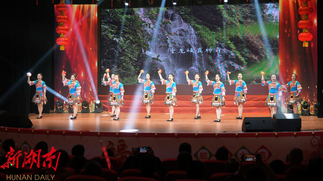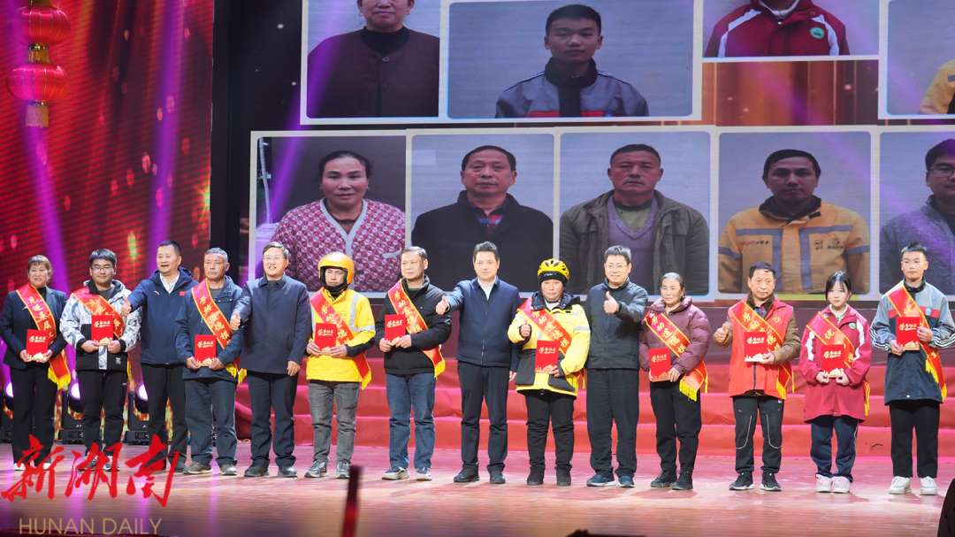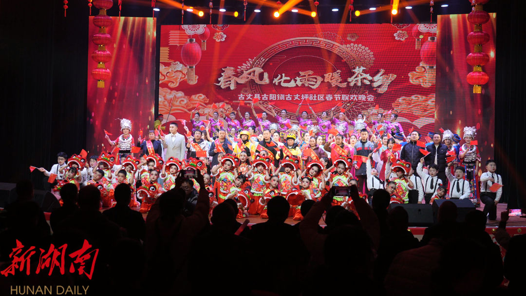 新湖南客户端1月24日讯(记者 郑湘 王玉华 通讯员 陈瑶)1月23日晚,湘西土家族苗族自治州古丈县古阳镇古丈坪社区举行了“春风化雨暖茶乡”为主题的春节联欢晚会,呈现了一场兼具文化韵味与时代气息的艺术盛宴,展现了古丈人民在新时代的豪情壮志与奋斗精神。县委书记滕朝辉,县委副书记、县长陈建新,县人大常委会主任郑良武,县政协主席宋祖林观看演出,并为受到表彰的劳动模范颁发奖牌。