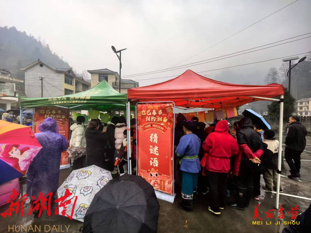 现场,书法家们挥毫泼墨,为村民书写春联贺岁,一副副饱含美好祝福的对联,传递着新春的温暖与喜悦。苗族秋香姐主持的联谊大会,为返乡探亲的单身男女搭建了相识相知的平台。棚子下,猜谜语活动也在火热进行,谜题涵盖传统文化、政策法规、时政热点等内容,村民们积极参与,答对者还能挑选心仪的礼品。