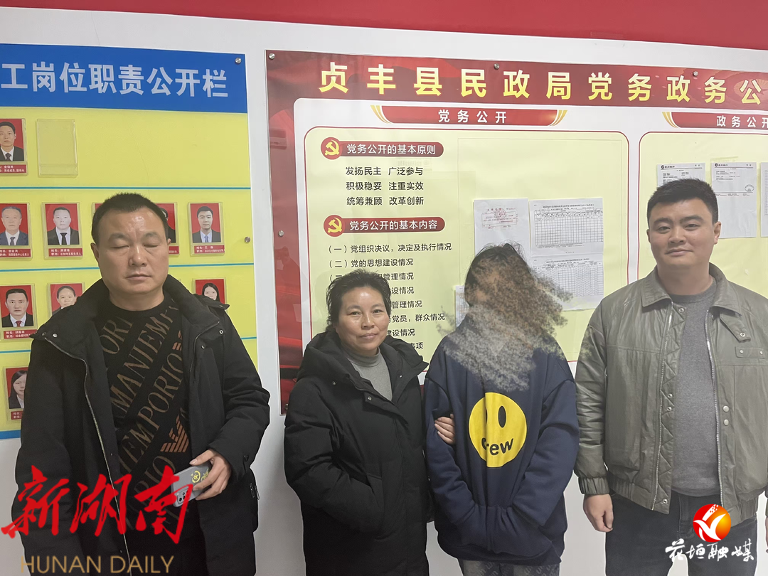 当杨鹃与家人团聚的那一刻,泪水与欢笑交织一起,让所有在场的人员无不流泪。女孩的家人们也是对花垣县救助站的千里送人返乡不停地表示感谢。