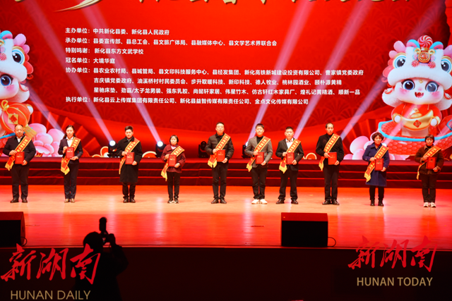 说唱歌曲《我哩新化》、山歌小组唱《耕·山》、武术《梅山武术》、歌伴舞《紫鹊心田》等节目,演绎出千古梅山传统的人文风情和深厚的历史底蕴;文印情景剧《资水文韵·文印新篇》、小品《直播间的助农梦》、情景剧《油溪桥情歌》等表演,则全面展示了新化文印、电子陶瓷、红茶、黄精等特色产业蓬勃发展的态势,以及梅山人民在脱贫攻坚、乡村振兴路上砥砺前行的实践。晚会现场还表彰了10位第六届新化县道德模范,通过短片形式展示了他们的动人故事。