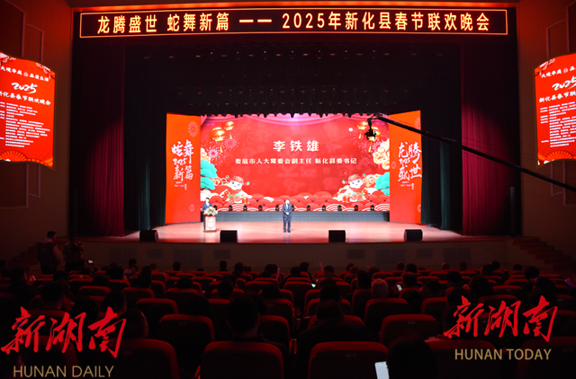 湖南日报·新湖南客户端1月25日讯(通讯员 邹畅宁 刘文 李晟豪)1月23日晚,“龙腾盛世·蛇舞新篇”2025年新化县春节联欢晚会暨春节团拜会在县东方文武学校金品梅山大剧院举行。娄底市人大常委会副主任、新化县委书记李铁雄致辞,新化县委副书记、县长彭韬主持春节团拜会。县领导李峰、杨韶红、李笃成、陈国聪、邹谊翔、鄢洛阳、彭小瑜、杨铁贞、邹喆、朱锋、赵伟光等出席。