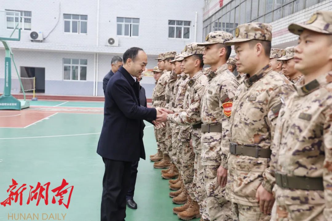 新新邵客户端1月24日讯 1月24日,县委副书记、县长谢小军带队走访慰问驻县部队官兵和县消防救援大队干部职工,向他们致以诚挚的问候和新春的祝福,感谢大家为新邵经济社会发展和社会大局稳定作出的积极贡献,寄语大家在新的一年再接再厉,努力推动各项工作再上新台阶。县人武部政委张尚书、县政协副主席刘慎参加慰问。