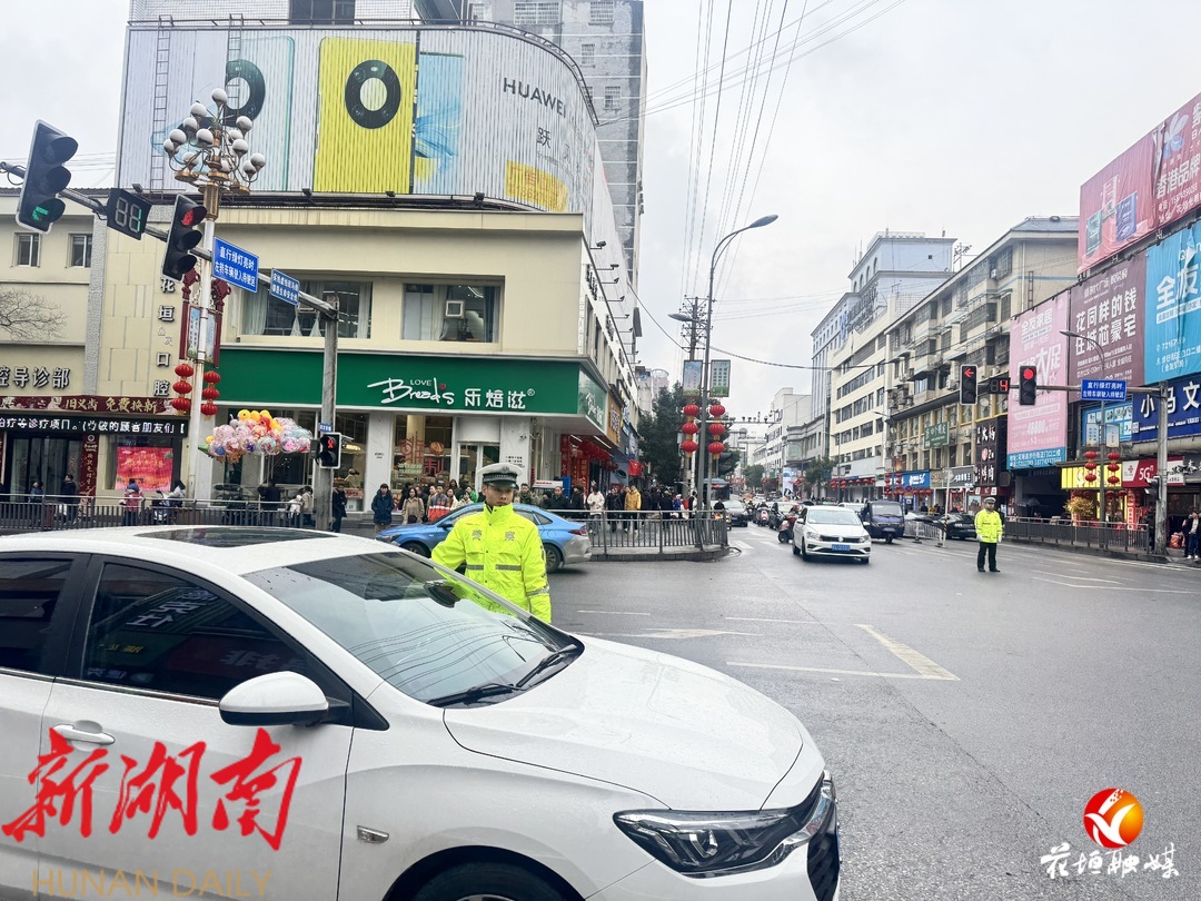 在城区主干道以及人流车流密集地加派警力,疏堵保畅(本组图片均由通讯员提供)