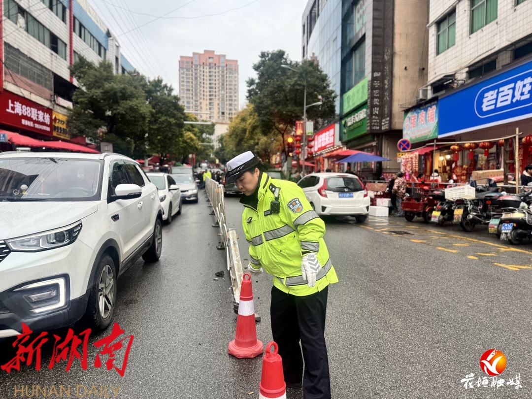 花垣公安交警优化改进勤务模式,组织警力在城区交通流量大、人员出行密集、流动商贩摆摊设点多的兴鹏广场、西门口农贸市场、三岔路老农贸市场、建设中路红绿灯等周边路段增设巡逻执勤岗,实行“定岗、定人、定责”制度,提前上岗、延时下班,紧盯高峰时段,采取警车巡逻及定点巡查等方式,提前清除乱停乱放车辆,引导车辆有序通行,劝导非机动车及行人不文明交通行为,缓解城区交通压力,做到人、车出行有序,保障道路畅通。在加强路面交通秩序的同时,执勤民辅警贯彻“柔性执法”工作思路,对轻微违法行为采取警告,张贴温馨提示告知单等方式进行批评教育,降低了行人、非机动车交通违法者等抵触情绪,为辖区和谐畅通的交通环境打下坚实基础。