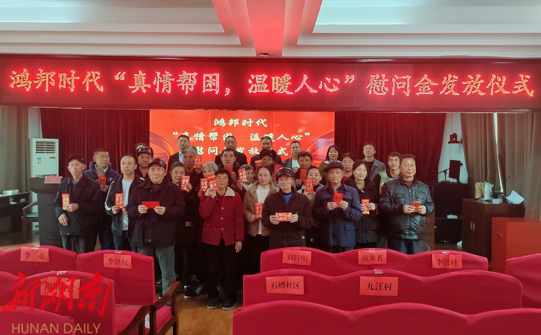 鸿邦时代公司的爱心不仅体现在对家乡教育事业的支持上,还体现在对孤寡老人的关怀上。此次回乡,企业还向三尖镇石槽社区、南阳社区、九江村的困难群众捐赠了64400元,用于生活物资和医疗保障等方面,让老人在寒冷的冬日里感受到社会大家庭的温暖。