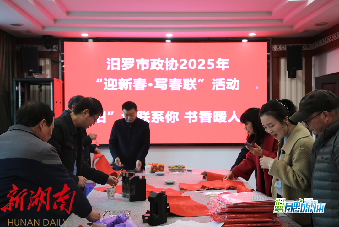 湖南日报·新湖南客户端1月27日讯(通讯员 黄宇星 刘心语)“汨”切联系你,书香暖人心。 近日, 汨罗市政协开展“迎新春•写春联”活动,市政协原主席、一级调研员彭千红,市政协副主席张勇与市政协机关全体干部职工、退休老同志及部分政协委员、书协会成员齐聚一堂,共写春联,送出辞旧迎新的美好节日祝福。