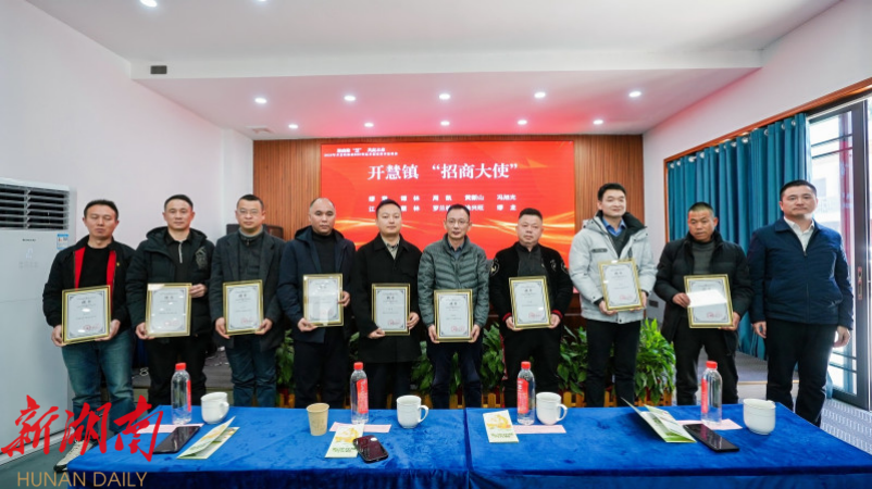 湖南日报·新湖南客户端1月27日讯(通讯员 张庆)今天,在新春佳节即将来临之际,长沙县开慧镇举办“湘商聚‘慧’ 共赢未来”湘商回归和返乡创业新春恳谈会,120余名开慧籍企业家参加。活动凝聚乡情,共商发展,为20名开慧籍企业家颁发“招商大使”聘书,引导和鼓励更多开慧籍企业家回乡投资创业,为开慧镇的经济发展和乡村振兴注入新活力。
