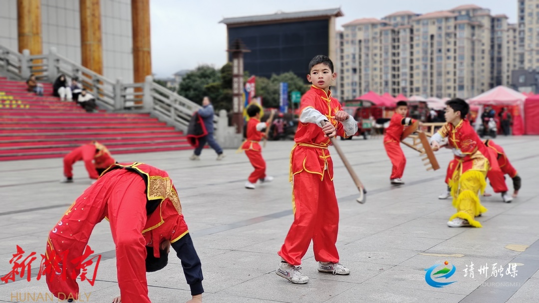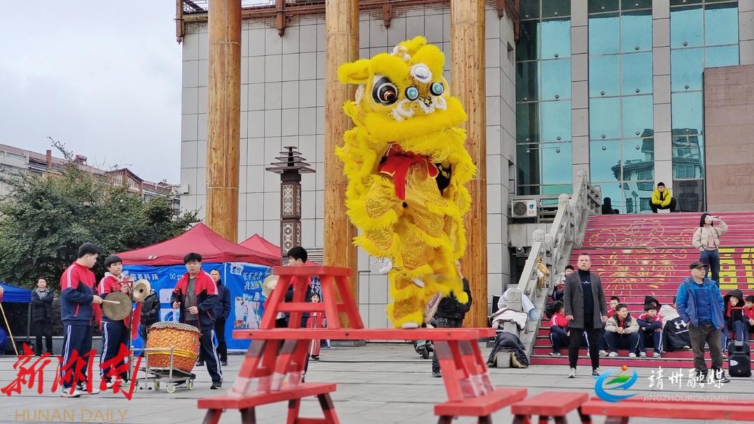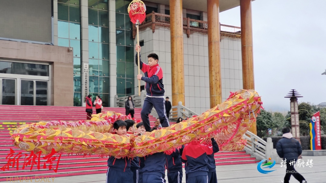靖州融媒1月 27日讯 (记者 龙俊霓 通讯员 张宗祥)1月27日,靖州苗族侗族自治县剧院前坪广场热闹非凡,一群十岁左右的孩子献上了一场精彩的舞龙舞狮表演,让市民们乐享传统文化盛宴。