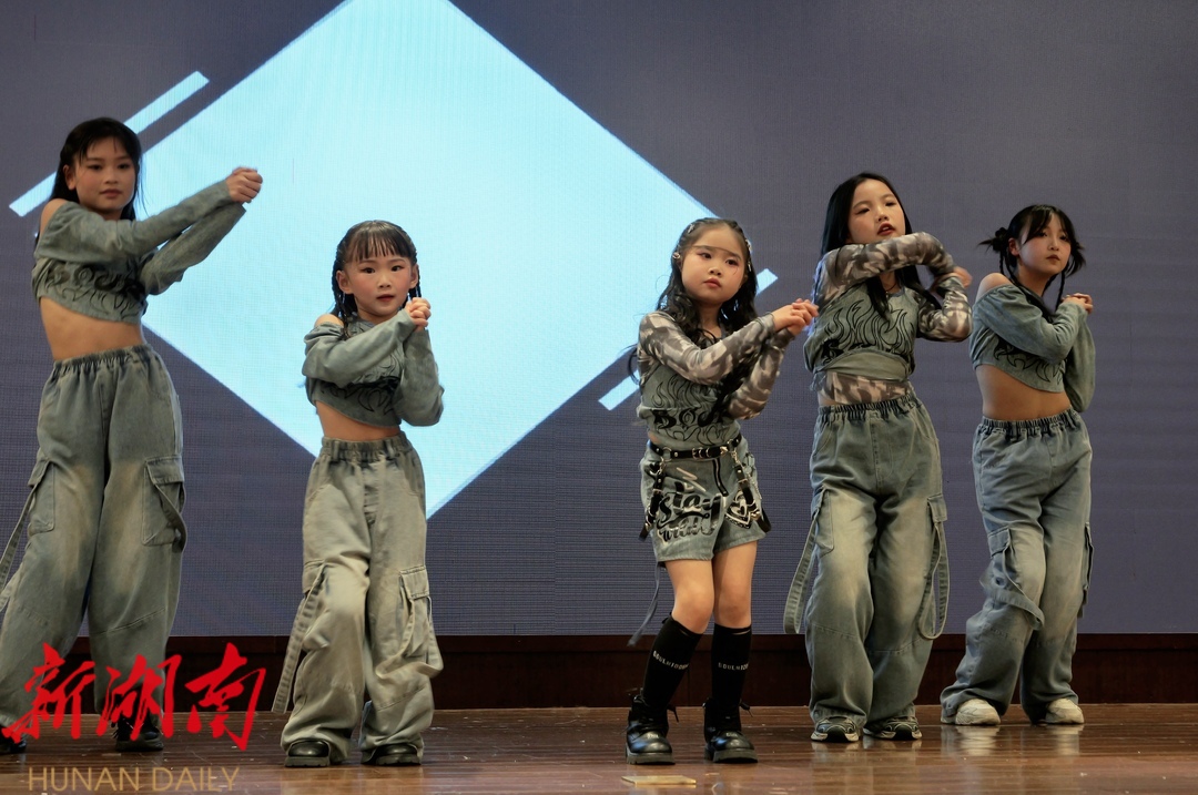 表演中,街舞爱好者们伴随着激昂的旋律,踩着节拍翩翩起舞。韩舞、爵士等21个街舞节目轮番上演,台下观众不时鼓掌尖叫。“我学街舞一年了,今晚表演了三支舞蹈,虽然有点害羞,但随着音乐和掌声的响起,我圆满地完成了今天的表演。”今年7岁的街舞爱好者刘思琪说,家人的支持给了她很大勇气,让自己战胜胆怯,勇敢地站上舞台展示自我。