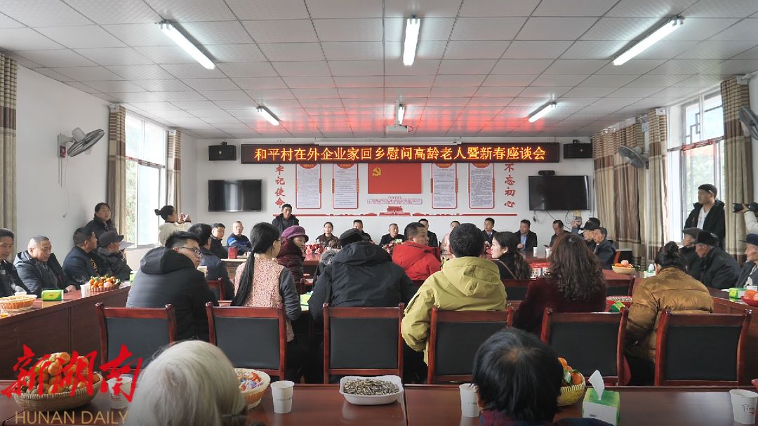 湖南日报·新湖南客户端 1月27日讯(记者 辛叶)1月26日,人潮溪镇和平村在外企业家回乡慰问高龄老人暨新春座谈会举行。县政协副主席赵宾儒出席座谈会。
