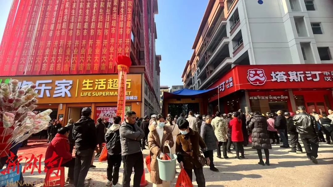 1月19日,新建成的新田铺镇飞跃步行街正式开业,成为该镇当天最热闹的地方,一波波客流蜂拥而至,选购自己心仪的商品。据介绍,该项目自2023年7月开工以来,建设进展顺畅,目前一期项目已完成整体屋面工程、砌体工程施工,部分商家已入驻试营业。
