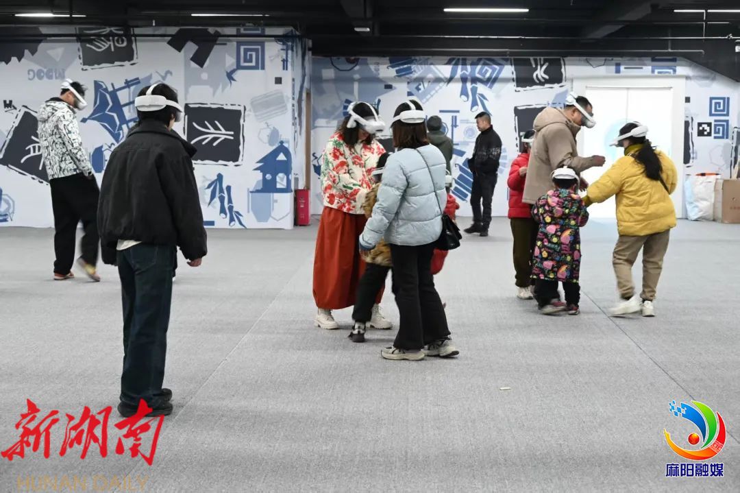 1月29日,正值新春佳节,怀化首家VR大空间沉浸式探索剧场——麻阳数字文旅体验空间在麻阳苗族自治县体育馆开启试营业。众多游客满怀期待地纷至沓来,大家都沉浸在参观体验当中。