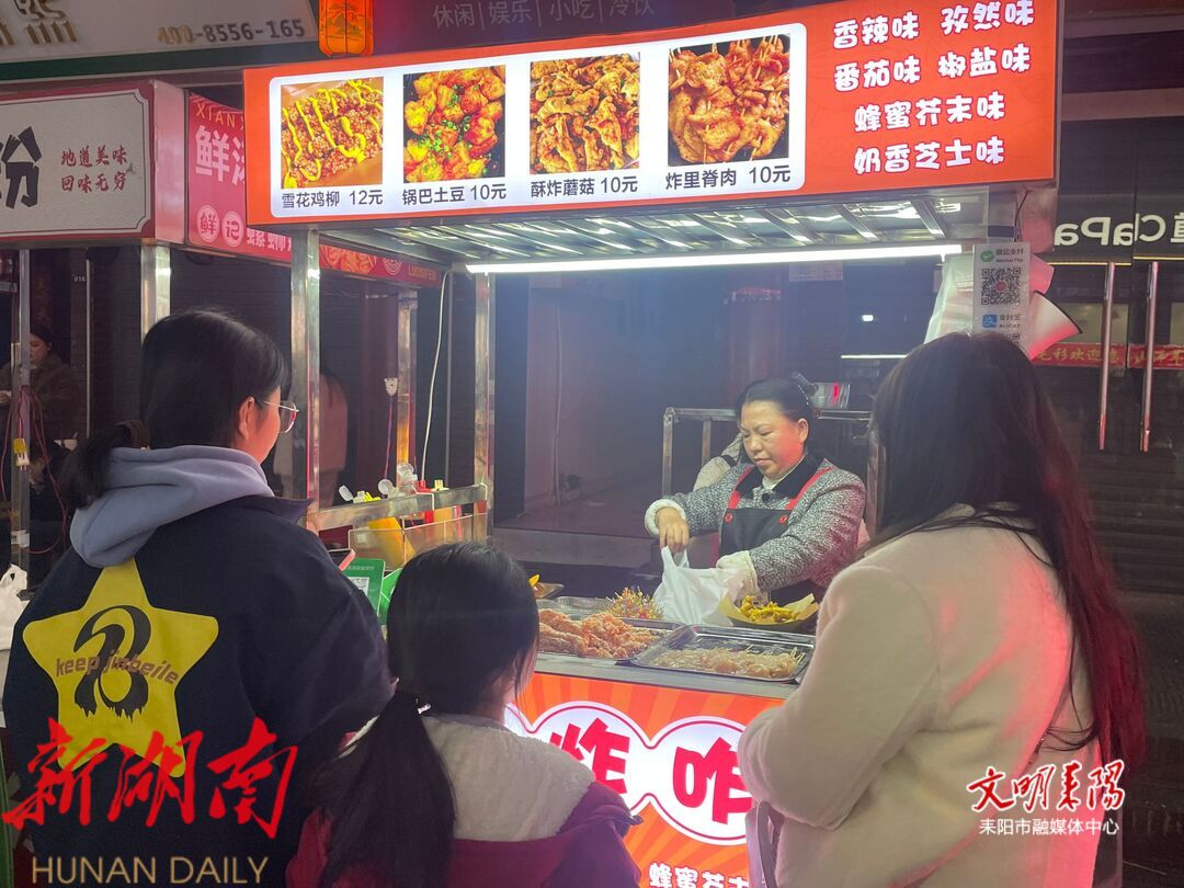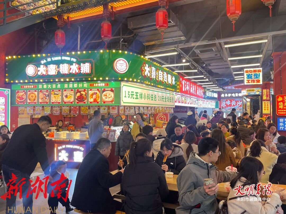 南正街作为耒阳最具代表性的老街之一,承载着耒阳人的记忆与情怀。春节期间,这条古街两旁的商铺和小吃摊摆得满满当当,记者在现场看到,近500米的古街上,灯火璀璨,四方游客络绎不绝。街道两旁的小吃摊和商铺琳琅满目,粉皮、凉皮、烧烤、臭豆腐、螺蛳粉等各式特色小吃应有尽有,满足了游客的味蕾需求。商户们纷纷表示,春节期间生意火爆,每天都忙得不可开交,但看到顾客们满意的样子,内心充满了喜悦和成就感。