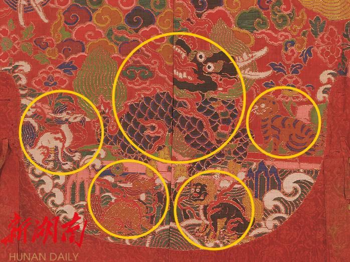 此件女袍上的“四兽朝麒麟” 图案