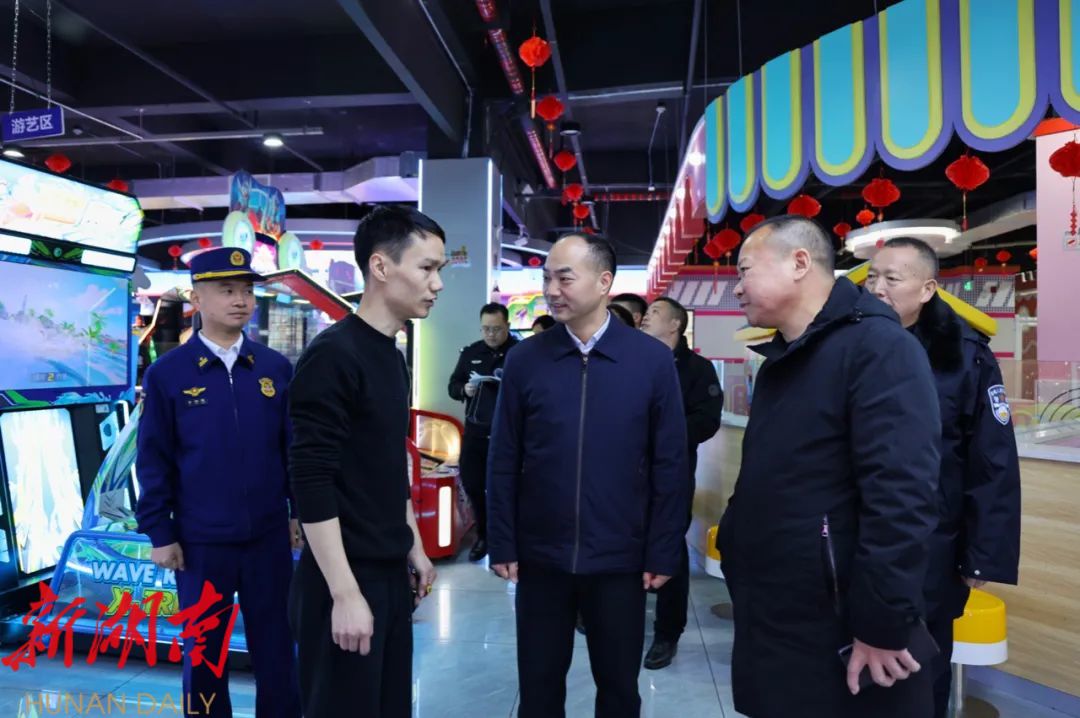 在湾田广场电影院、游戏厅等人流密集场所,谢小军详细了解安全生产情况,仔细检查应急疏散通道是否畅通、消防设施是否正常运行、消防安全标识设置是否合理,针对发现的问题提出整改要求。他强调,春节假期人流量大、人员密集,安全风险上升,各经营主体和相关部门要增强“时时放心不下”的责任感和“隐患无处不在”的危机感,开展好安全大排查与隐患整治;要严格落实春节期间的值班和应急机制,强化对值班人员安全知识和应急处置能力的培训,加强对顾客消防知识和逃生技能的普及提醒,全面营造安全放心的消费环境。