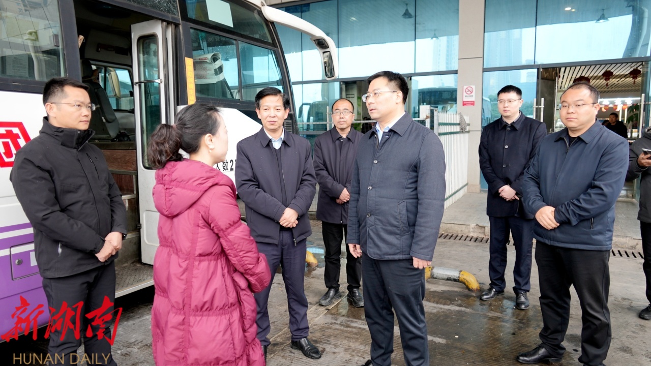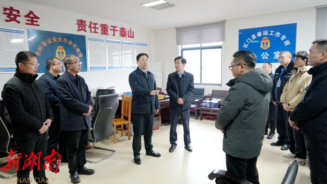 在石门汽车总站,李长春认真检查了车辆安全设施配备、旅客安检流程等情况,并慰问春运一线工作人员。他强调,春运关乎广大人民群众的切身利益,相关部门和客运企业要严格落实安全主体责任,加强车辆安全检查,提升服务质量,为旅客提供安全、便捷、温馨的出行环境。