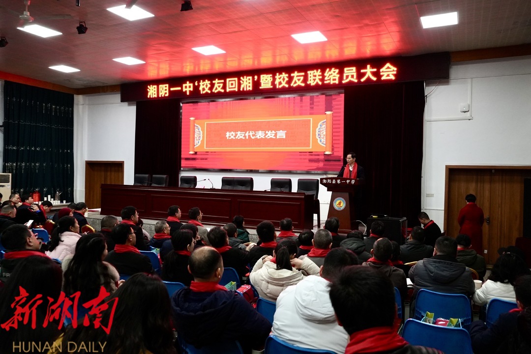 湖南日报·新湖南客户端2月2日讯(通讯员 胥扬)“乡贤思左郭,屈子效精忠。继往开来向前进,复兴民族作先锋!”2月2日,湘阴县一中校园内歌声嘹亮,来自全国各地的200多位校友代表满怀热忱齐聚母校,参加湘阴一中“校友回湘”暨校友联络员大会,共叙师生情谊,共谋发展大计。湘阴县政协党组书记、主席杨革新,岳阳市委宣传部副部长汤文彬出席活动。