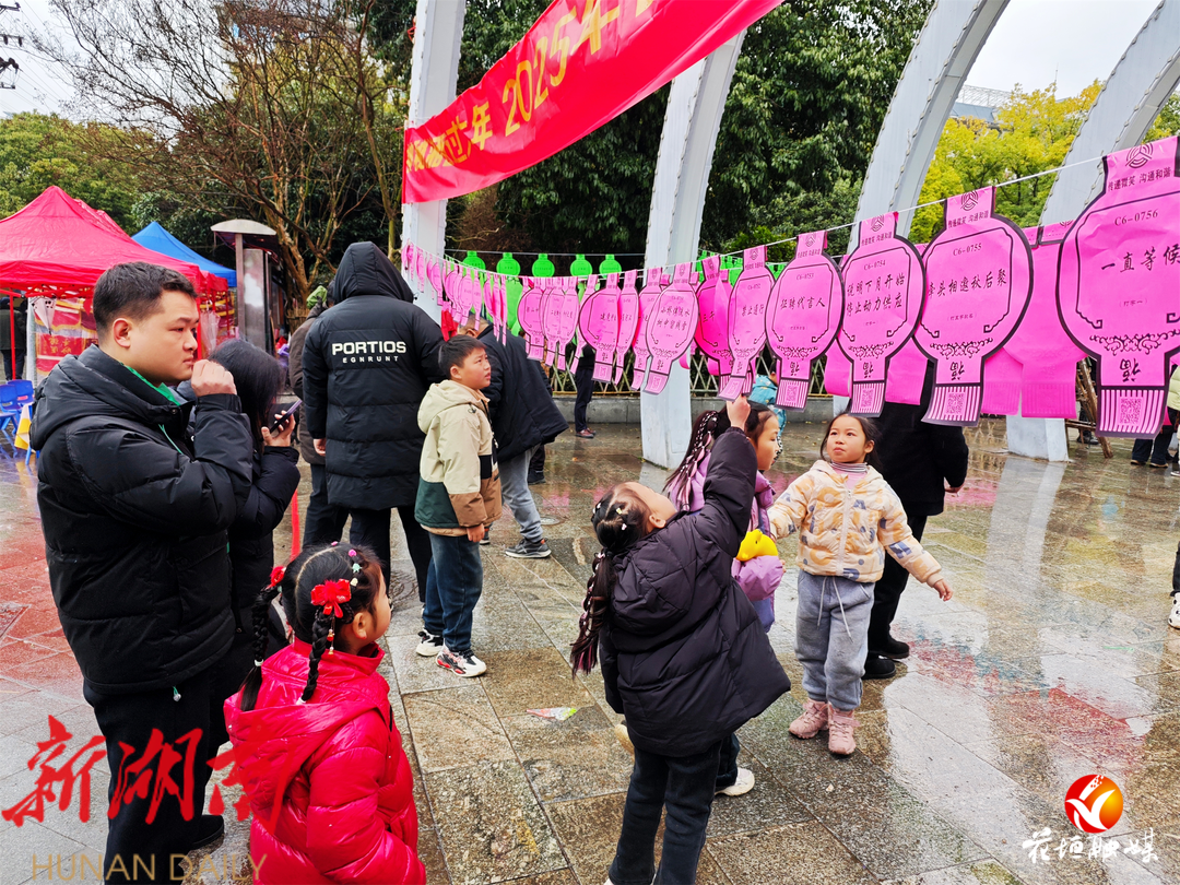 2月2日,正值大年初五,花垣县边城广场热闹非凡,“神秘湘西过大年”2025年春节灯谜有奖竞猜活动正如火如荼地进行,吸引了众多市民热情参与。