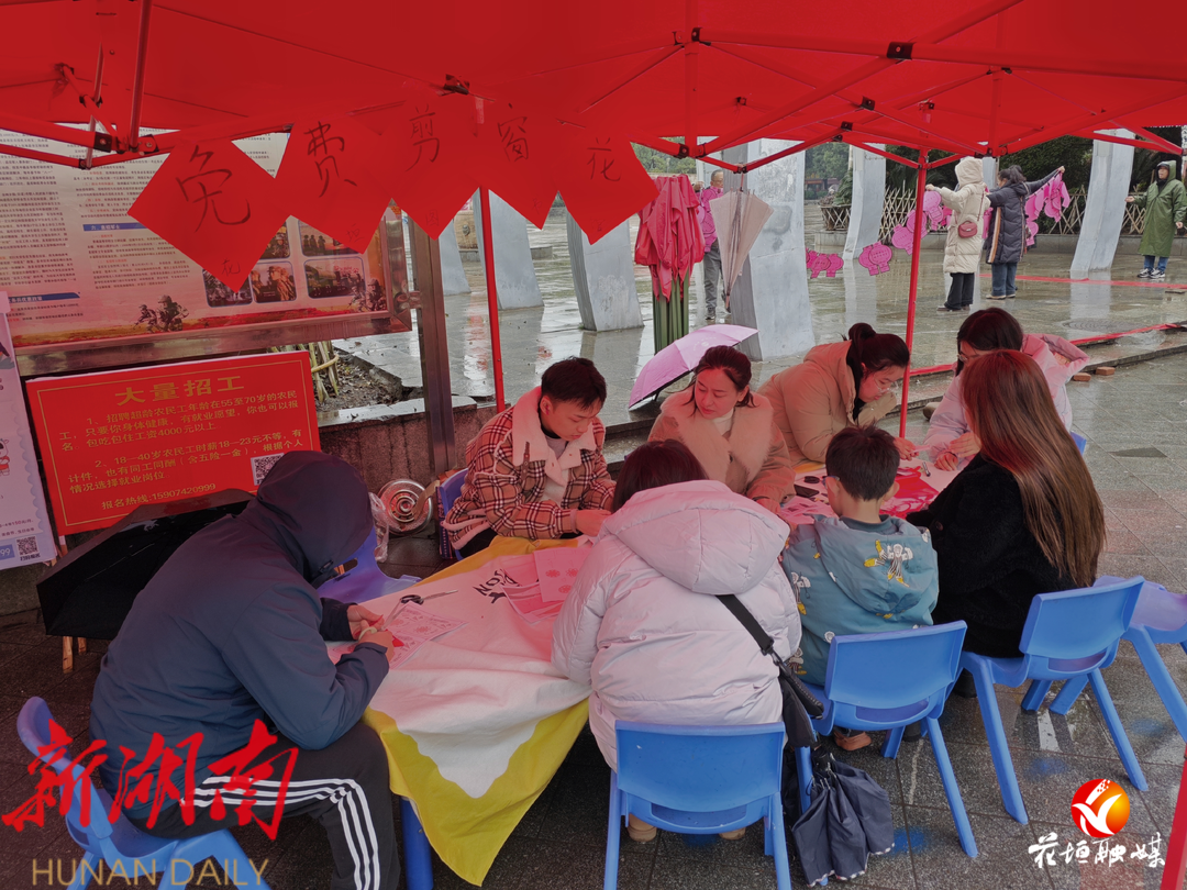 另一边的免费剪窗花活动也备受市民们的青睐。一张张红纸在众人巧手的剪裁下,瞬间变成了各式各样的窗花作品,每一幅作品都蕴含着浓浓的年味和美好的祝福。