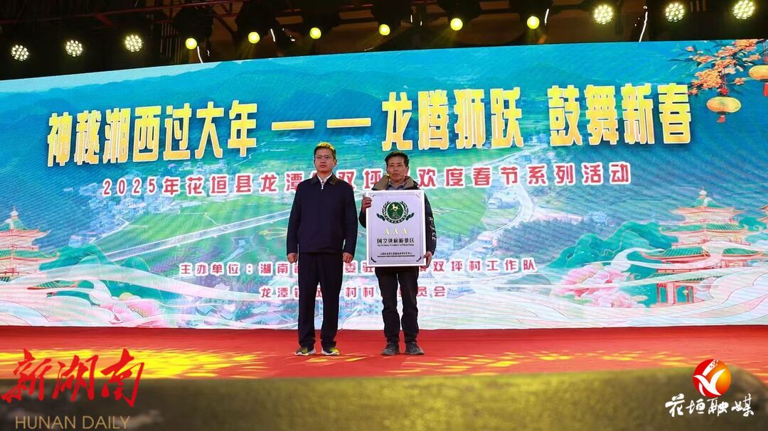 现场还举行了双坪国家3A级旅游景区授牌仪式,花垣县人民政府副县长吴坚为双坪景区授牌。