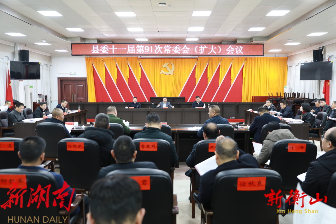 2月5日,衡阳市政协副主席、衡山县委书记戴新贤主持召开县委十一届第91次常委会(扩大)会议,传达学习习近平总书记在二〇二五年春节团拜会上的重要讲话精神,听取2024年度全县重点项目建设和企业联手帮扶工作情况汇报。