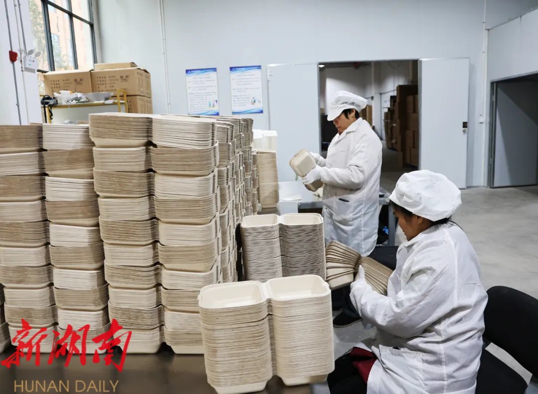 在湖南轻尚纸塑制品有限公司,各生产车间、验货车间、包装车间的返岗工人正有条不紊地忙碌着。