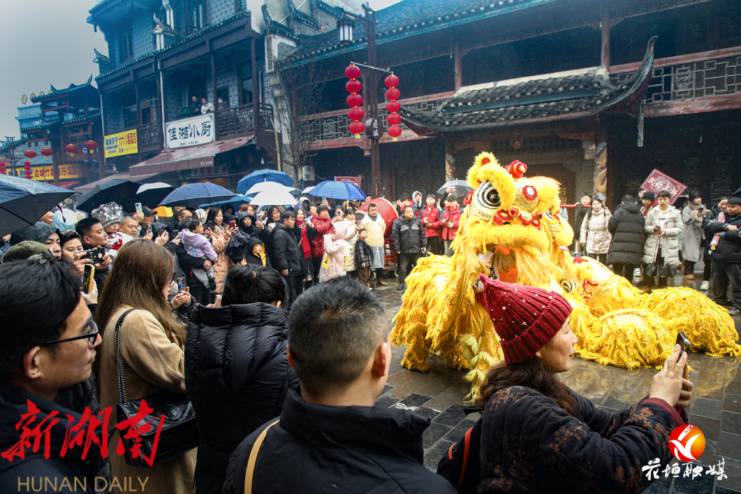 边城茶峒景区舞狮表演吸引众多游客围观 石林荣摄