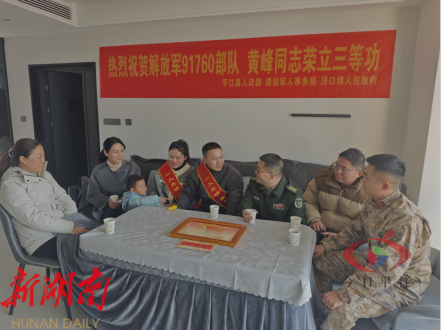 军旅建功勋,家乡展风采。近日,平江县人武部、县退役军人事务局、浯口镇组成的送喜报小组为荣立个人三等功的现役军人黄峰家庭送去立功喜报和慰问金,共同见证这一荣耀时刻。