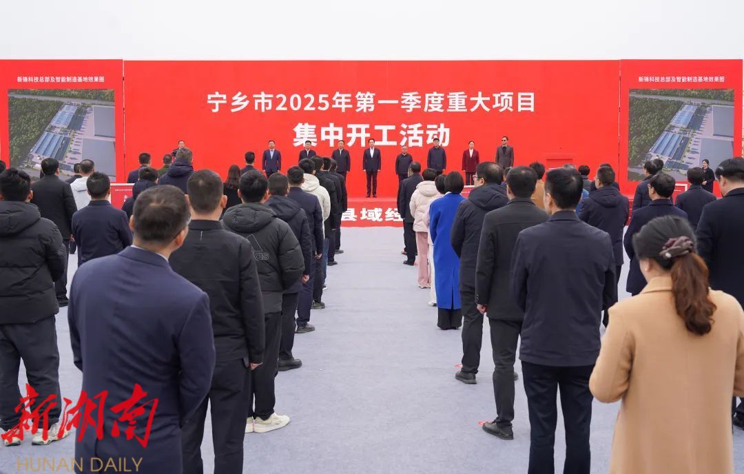 湖南日报·新湖南客户端2月6日讯(通讯员 李向 李艺超 周娉)蛇年新春伊始,宁乡市就掀起项目建设热潮!“我宣布:宁乡市2025年第一季度重大项目集中开工!”2月5日,春节假期后的首个工作日,宁乡市2025年第一季度重大项目集中开工活动在宁乡高新区新锋科技总部及智能制造基地项目现场举行,宁乡经开区党工委书记、宁乡市委书记张作林宣布项目集中开工。