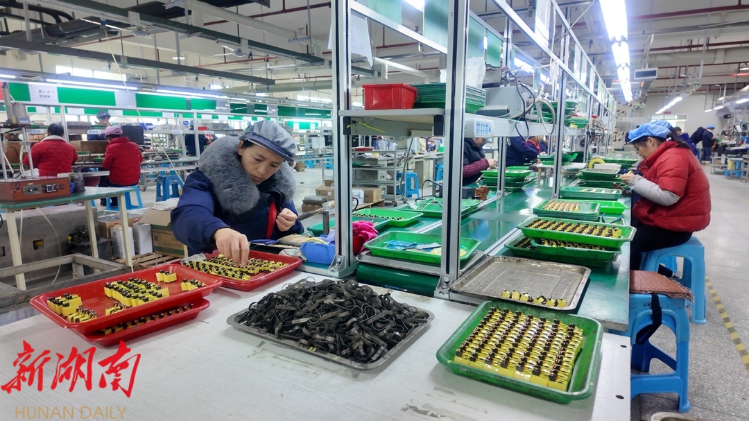 2月7日,记者走进洞口县慧创电子有限公司的生产厂房,看到工人师傅们身着工作服,在生产线 熟练地操作着设备。 制造部戴女士说:“新的一年,希望能多学些新技术,把产品质量提得更高,多涨点工资,把日子过得更好。”