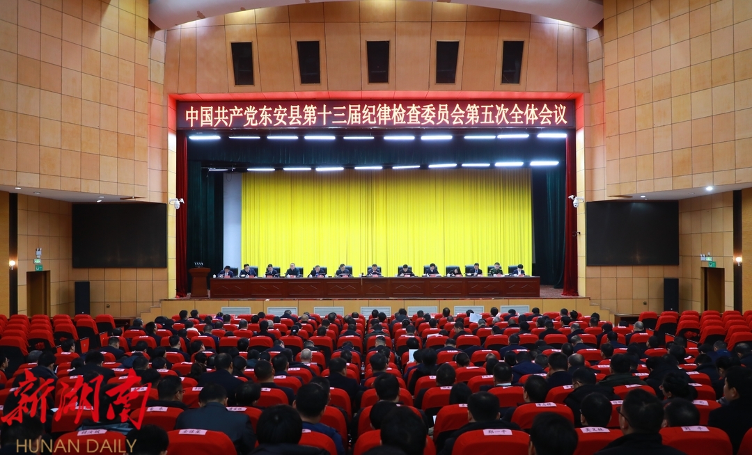 新湖南客户端2月7日讯(通讯员 易恒戬 唐诗琴 )2月7日上午,中国共产党东安县第十三届纪律检查委员会第五次全体会议在东安会堂召开。会议深入学习贯彻习近平总书记在二十届中央纪委四次全会上的重要讲话精神,全面落实省、市纪委全会部署安排,回顾总结我县2024年纪检监察工作,安排部署2025年各项任务。县委书记唐何出席会议并讲话。县委副书记、县长蒋华,县委副书记、统战部部长李月红,县人大常委会主任张波,县政协主席李劲涛和谢梅芳、张恒、唐久梅、唐青松、田军、成宇、黄敏、秦波等县领导出席会议。