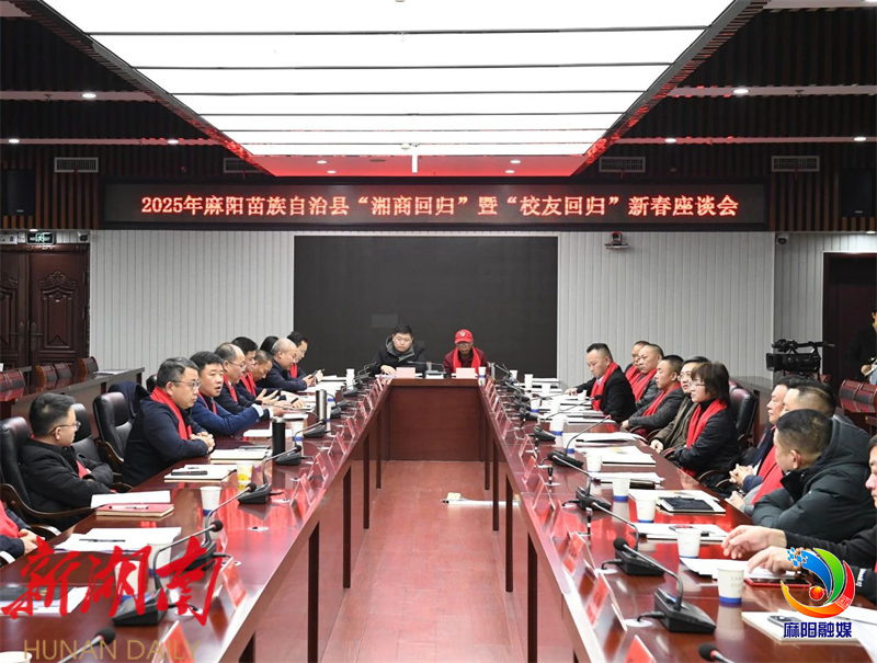 1月26日下午,在新春佳节到来之际,麻阳县委、县政府召开2025年“湘商回归”暨“校友回归”新春座谈会,畅叙赤子爱乡之情,共商家乡发展大计。县委书记江涛主持并讲话,县委副书记、县长胡宏林介绍了麻阳县域经济发展情况,县领导李彬、吴志勇、李节、胡晓等出席。