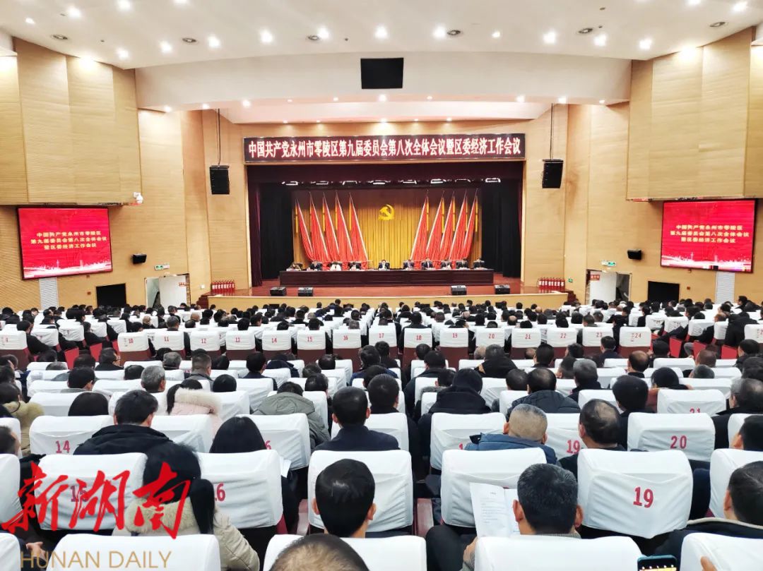 湖南日报·新湖南客户端2月8日讯(通讯员 杨情陆 赵贵松)2月7日上午,中国共产党永州市零陵区第九届委员会第八次全体会议暨区委经济工作会议召开。会议深入学习贯彻党的二十大和二十届二中、三中全会精神及中央经济工作会议精神,全面落实省委全会、市委全会和省委、市委经济工作会议精神,总结2024年经济工作,部署2025年经济工作,动员全区上下坚定不移抓改革,全力以赴稳增长,奋力开创零陵经济社会高质量发展新局面。