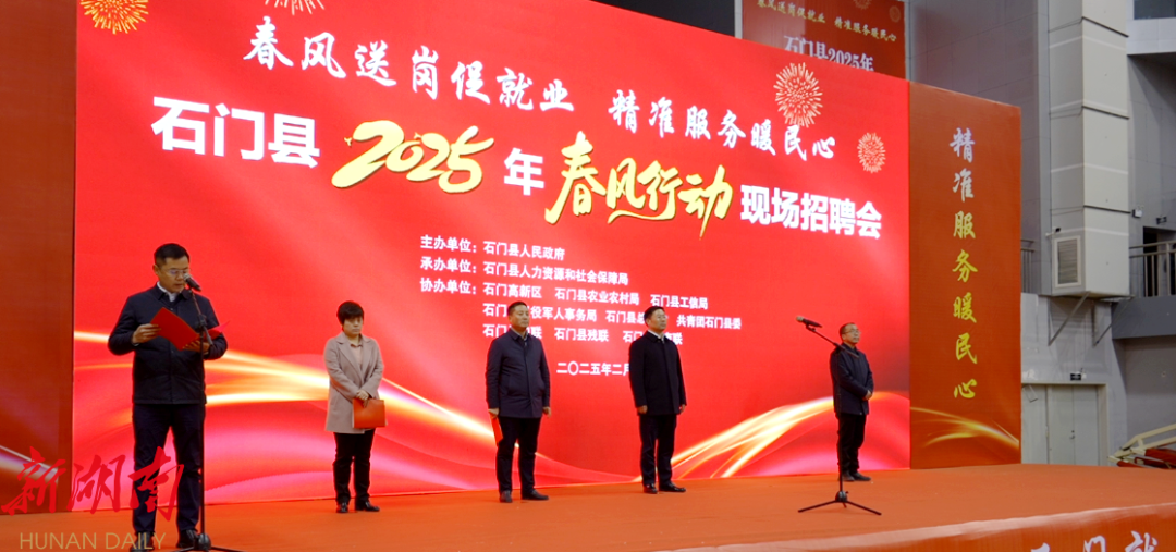 2月8日,石门县2025年“春风行动”大型现场招聘会在全民健身活动中心举行。县委副书记、县长李长春出席活动并宣布招聘会启动,县领导陈溢、王贤平、唐汇驰出席启动仪式。