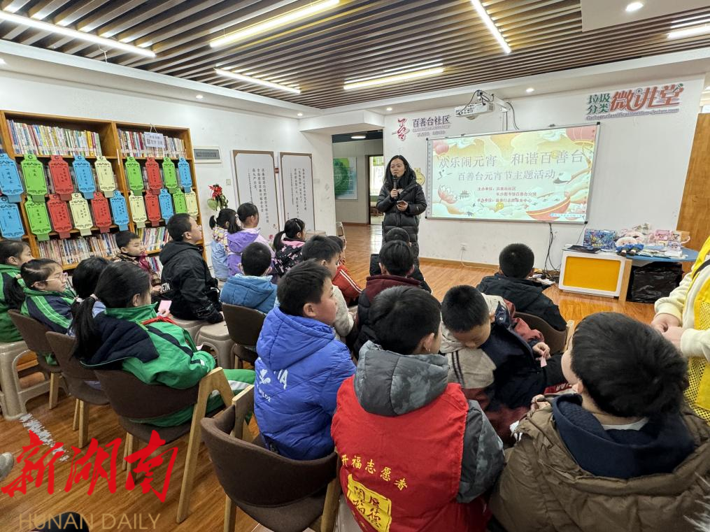 湖南日报·新湖南客户端2月10日讯(通讯员 任萱)“不展芳尊开口笑,如何消得此良辰。”元宵佳节将至,为传承中华优秀传统文化,弘扬清正廉洁之风,2月9日,开福区湘雅路街道百善台社区于长沙图书馆百善台分馆精心举办了《我们的节日:元宵节》活动,把传统节日的喜庆和清廉文化的庄重巧妙融合,为社区居民献上一场独具特色的文化盛宴。