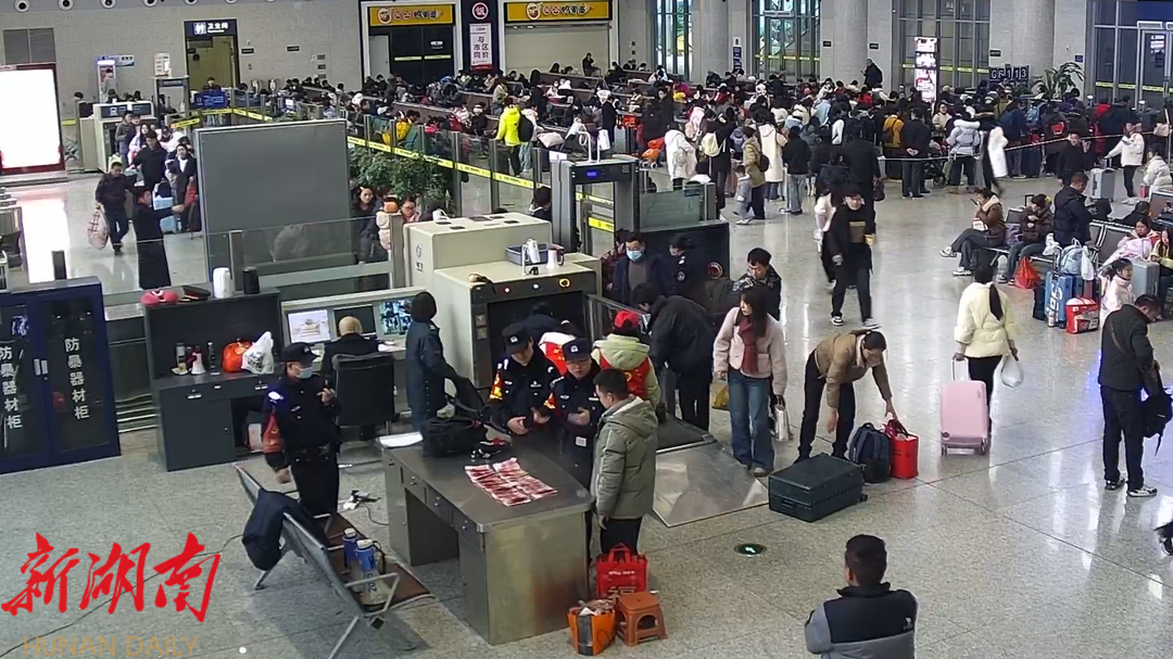 2月7日, 洞口站的铁路民警发现安检口有一黑色背包无人认领,便迅速展开行动。民警一边利用喇叭在候车室内呼喊失物招领信息,询问周边旅客是否见过该背包的主人;一边通过安检口的监控视频,查看背包遗落的时间和经过,锁定了背包的失主并立即与其取得联系。