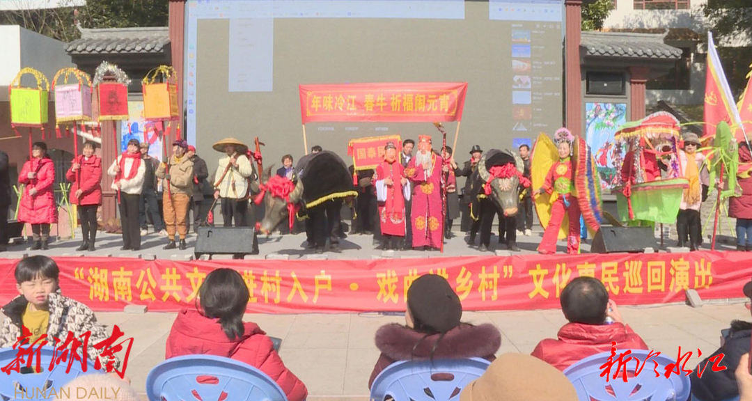 新春舞春牛是冷水江 一项历史悠久的传统民俗活动,象征着人们对新的一年的美好祈愿和对农业丰收的热切期盼。每年春节期间,艺术团的演员们都会自发组织起来,通过舞春牛的形式来表达对幸福生活的向往和追求。