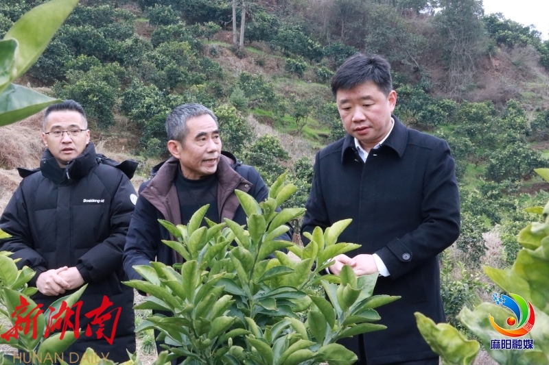 县委书记江涛在岩门镇大路坳村胡家湾冰糖橙种植基地调研