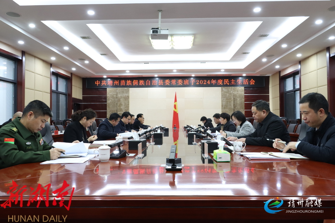 会 上, 通报了县委常委班子 学习贯彻习近平新时代中国特色社会主义思想主题教育以来有关民主生活会整改落实和本次征求意见等会前准备工作情况、 2024年县委常委会贯彻执行中央八项规定精神情况、2024年度靖州县整治形式主义为基层 减负工作情况。 黄忆钢代表县委常委班子作对照检查。随后, 县 委常委同志依次进行个人对照检查和自我批评,并由其他常委同志提批评意见。 大家紧扣会议主题,结合反面典型案例,本着对党、对事业、对同志高度负责的态度,敞开心扉谈问题,开诚布公提意见,达到了统一思想、增进团结、改进作风、促进工作的目的。