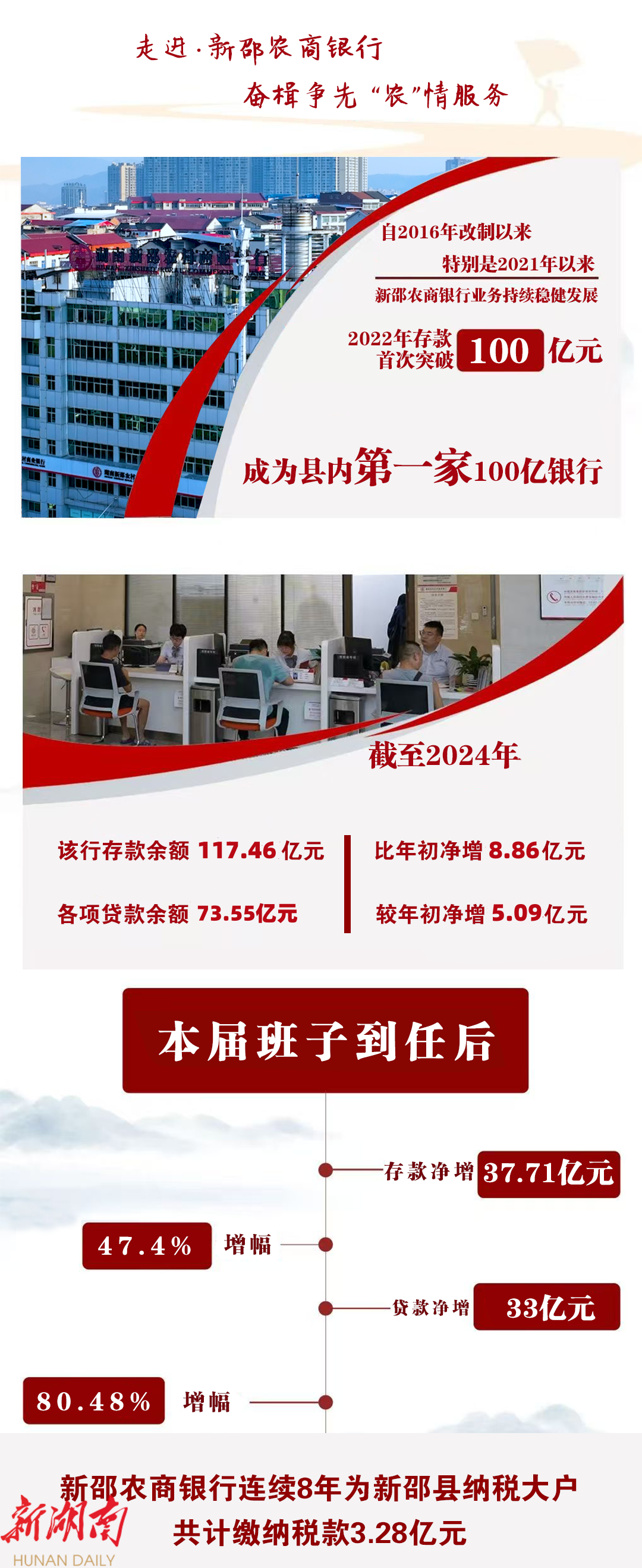 新邵农商银行立足新邵大地,服务新邵发展,聚焦脱贫攻坚、乡村振兴、稳企纾困等重点工作,带领全行推动各项金融政策落地见效,在助力地方经济社会高质量发展中扛牢农商担当,奋力写好发展新质生产力的“农商答卷”。