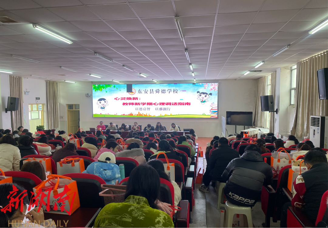 新湖南客户端2月11日讯(通讯员 刘宾 陈思李)2月11日,东安县舜德学校举办教师新学期心理调适指南讲座。