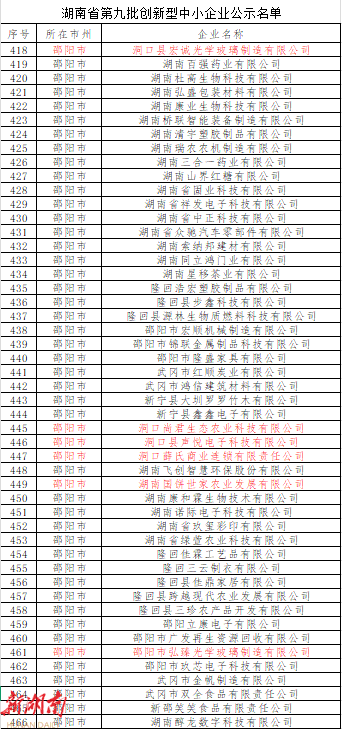 洞口六家企业上榜湖南省第九批创新型中小企业名单