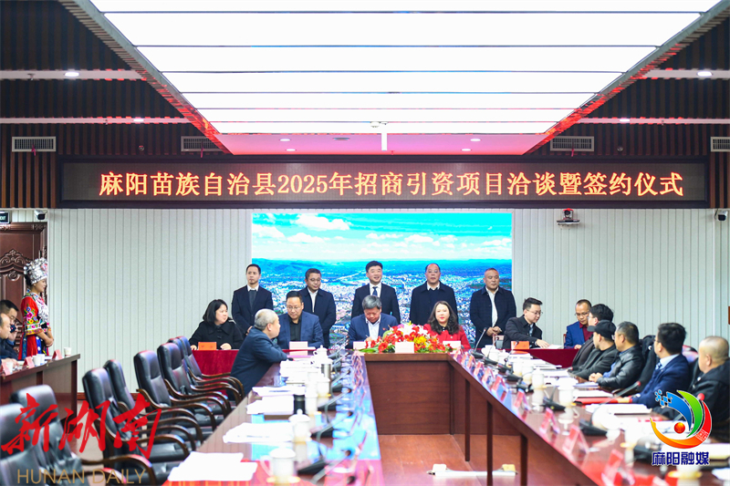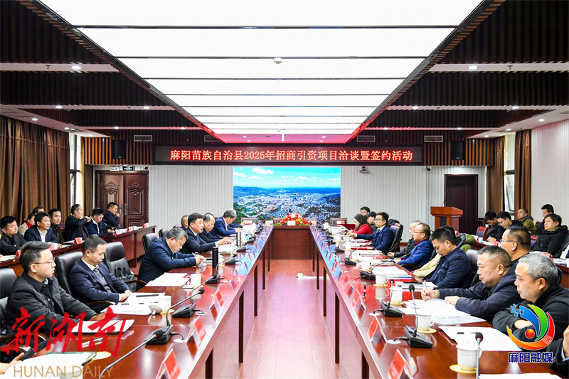 2月10日下午,麻阳苗族自治县 2025 年招商引资项目洽谈暨签约活动举行。县委书记江涛出席并讲话,县委副书记、县长胡宏林主持。县领导李彬、阳承凡、欧阳海峰、张军、李节、向翼及签约企业、麻阳部分本土企业负责人参加。