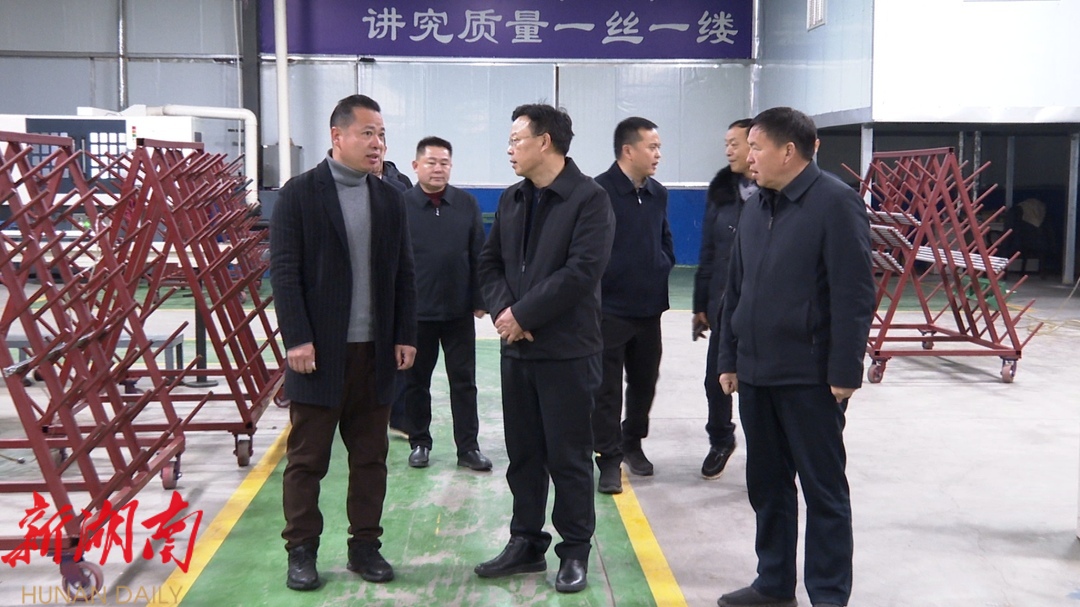 新洞口客户端2月11日讯(记者:薛源 通讯员:肖为志) 2月11日,县委书记吴韬到洞口经开区开展“两重”“两新”送解优走访,调研企业复工复产情况。县委常委、县委办主任刘玮,副县长林飞参加调研。