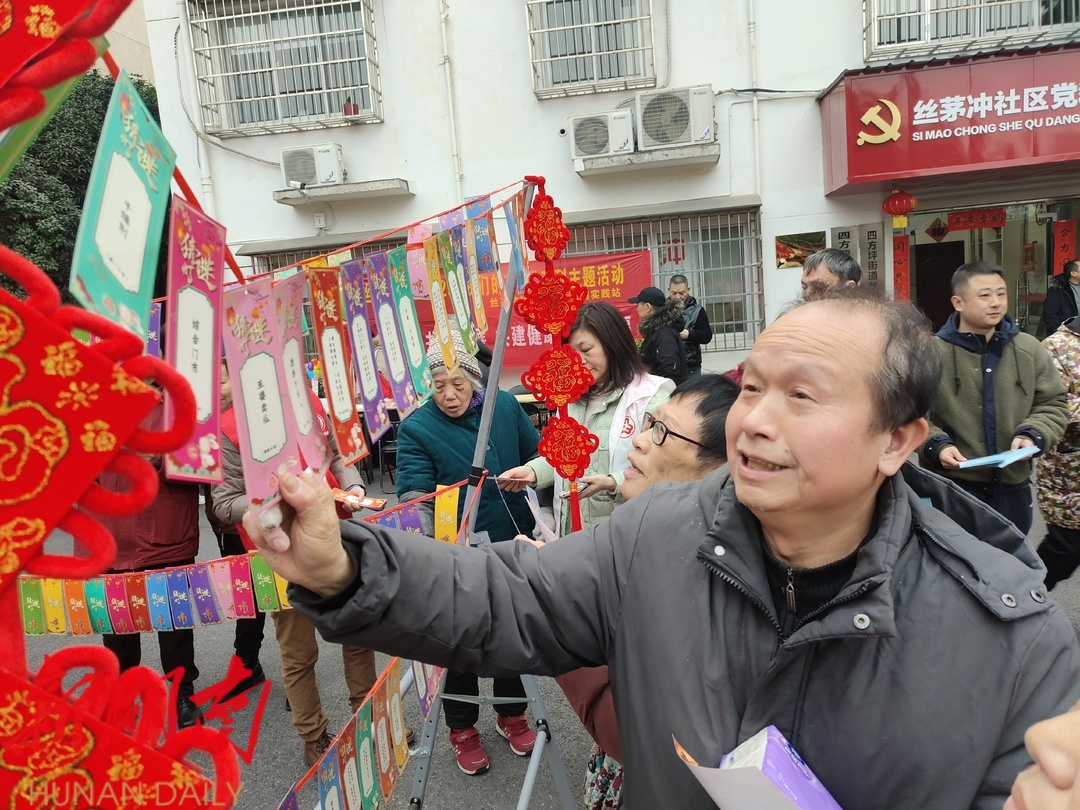 据介绍,该社区此次准备的近200条灯谜涵盖了反腐倡廉、安全生产、禁毒、反电诈、食安、打击非法集资、创卫、移风易俗等宣传知识,为丝茅冲社区网格的居民们带来了一场充满温情与教育意义的元宵喜乐会,寓教于乐,深受居民喜爱。