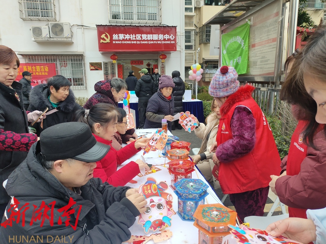 活动当天,丝茅冲社区25号网格张灯结彩,热闹非凡。通过绘元宵、猜灯谜、品汤圆、做花灯等欢乐互动民俗活动,营造了浓厚的节日氛围。